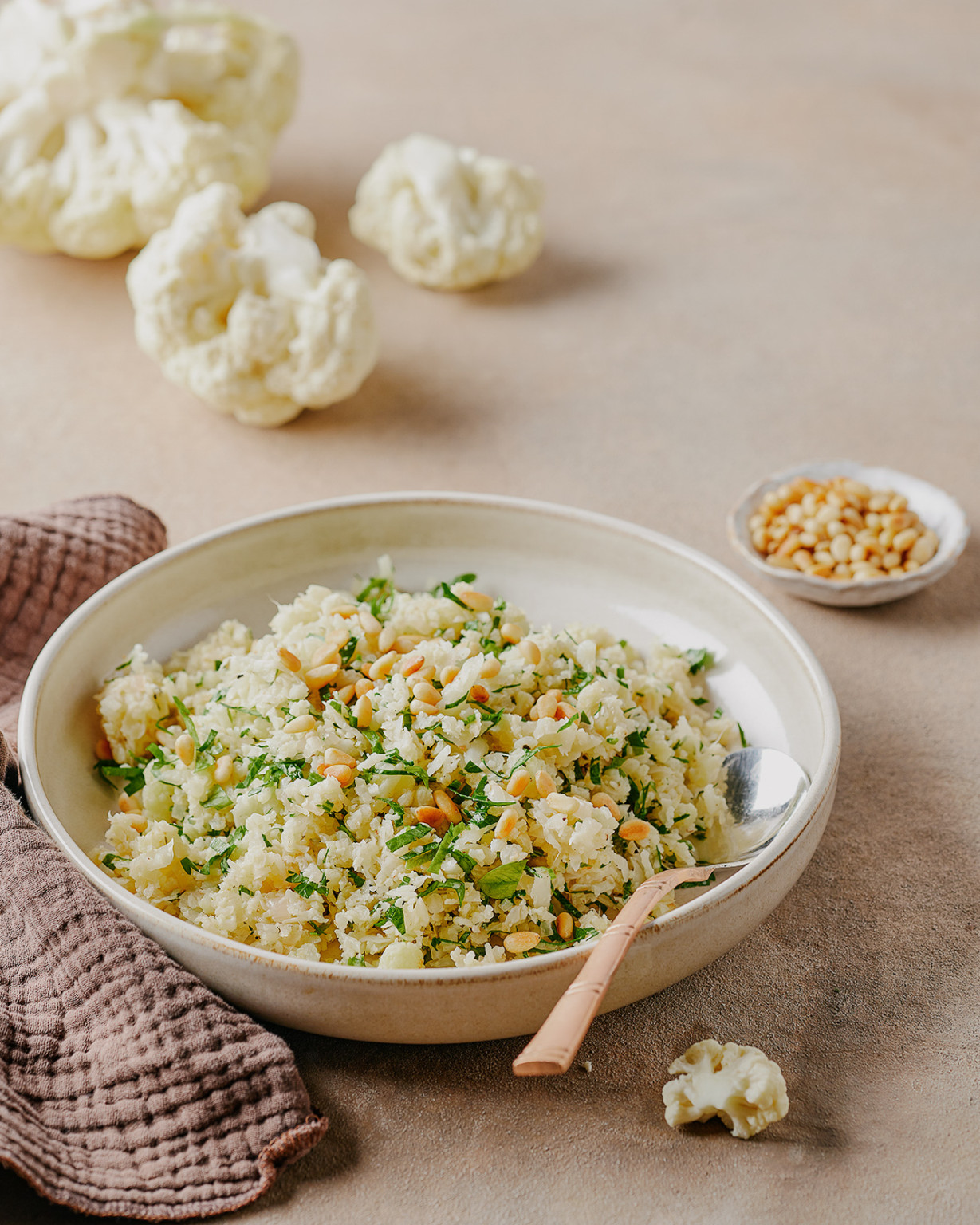 Puķkāposta "rīsi" ar ciedru riekstiem
